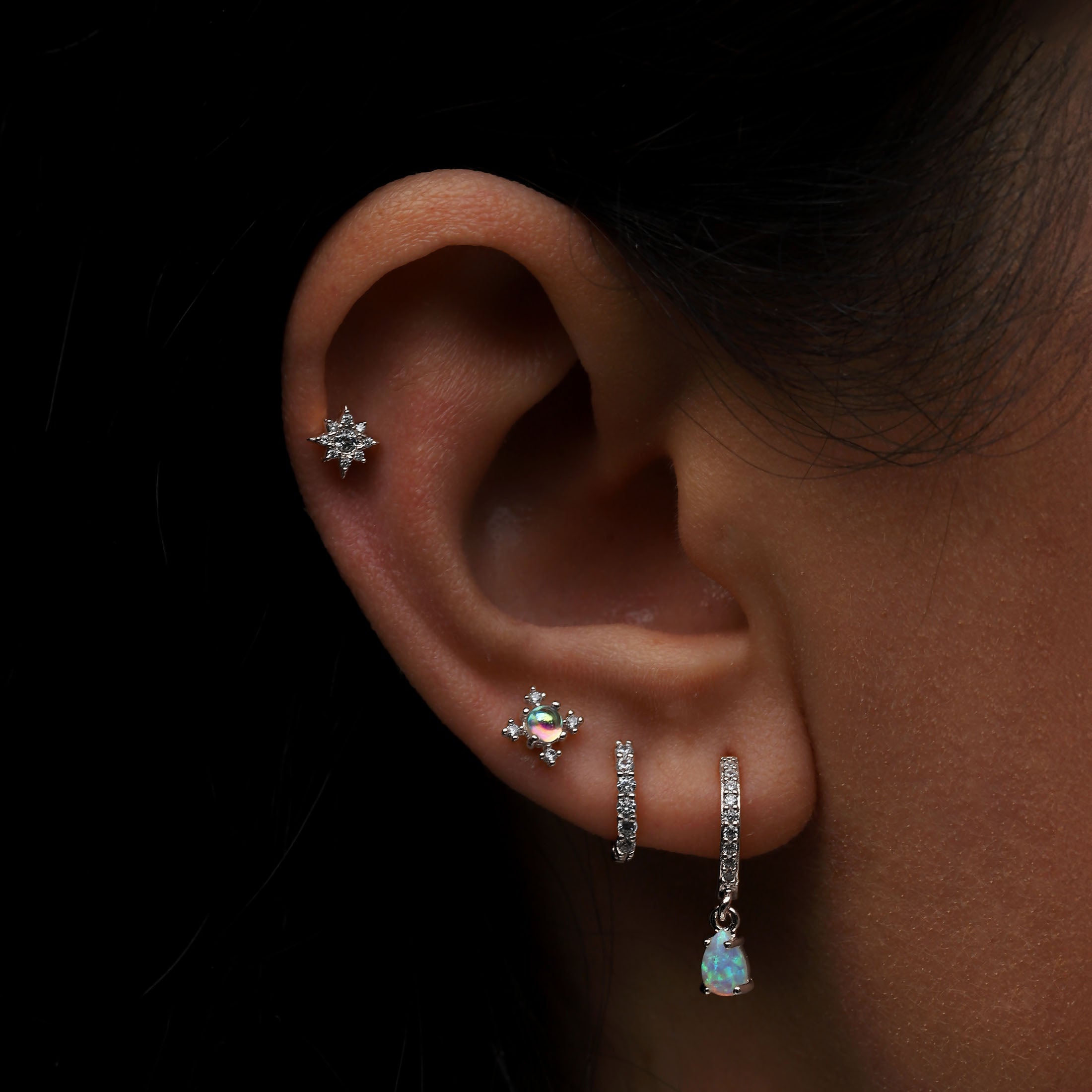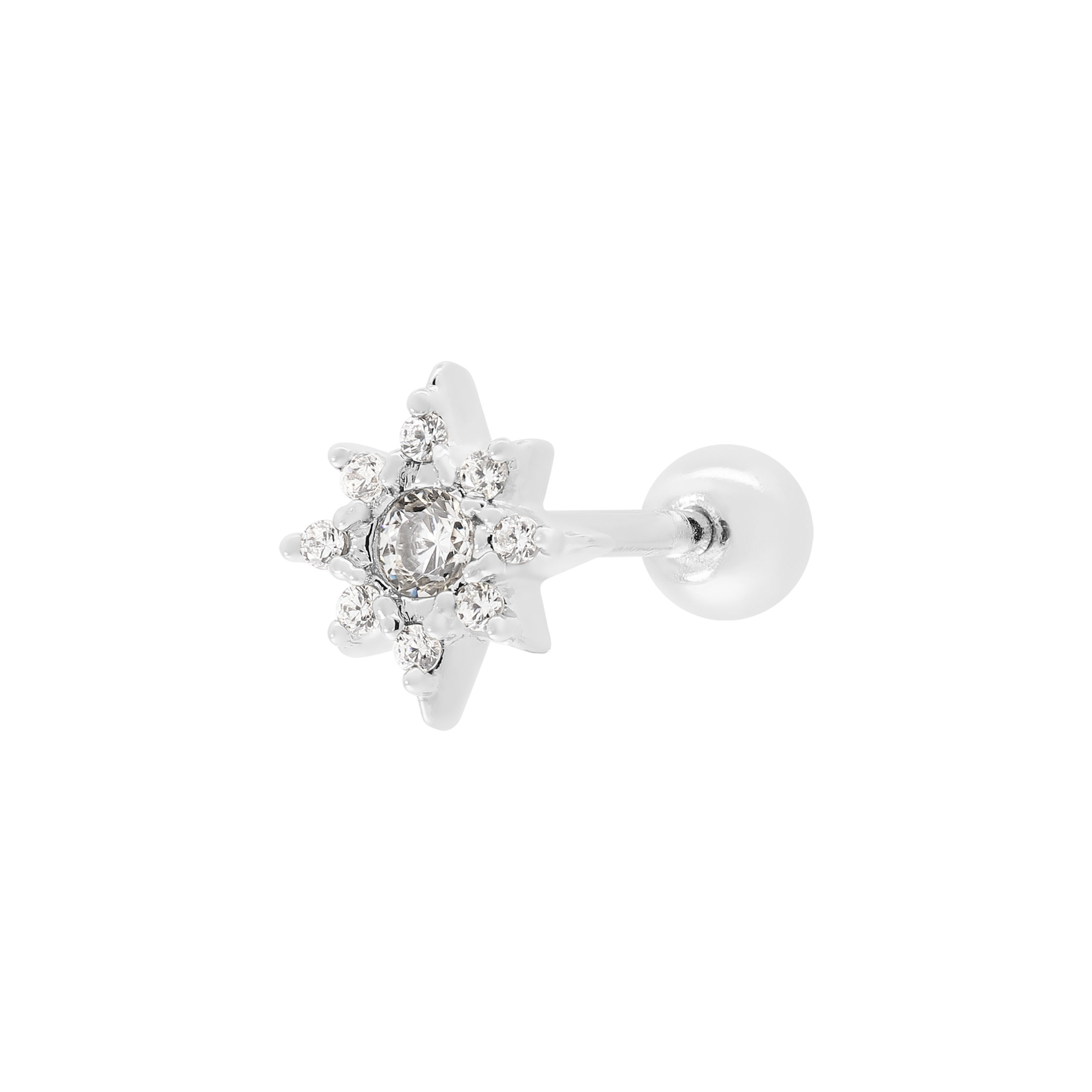The brightest star from the sky for your ears. Crafted in sterling silver, wear this piercing alone or with your ear stack for a burst of sparkle.