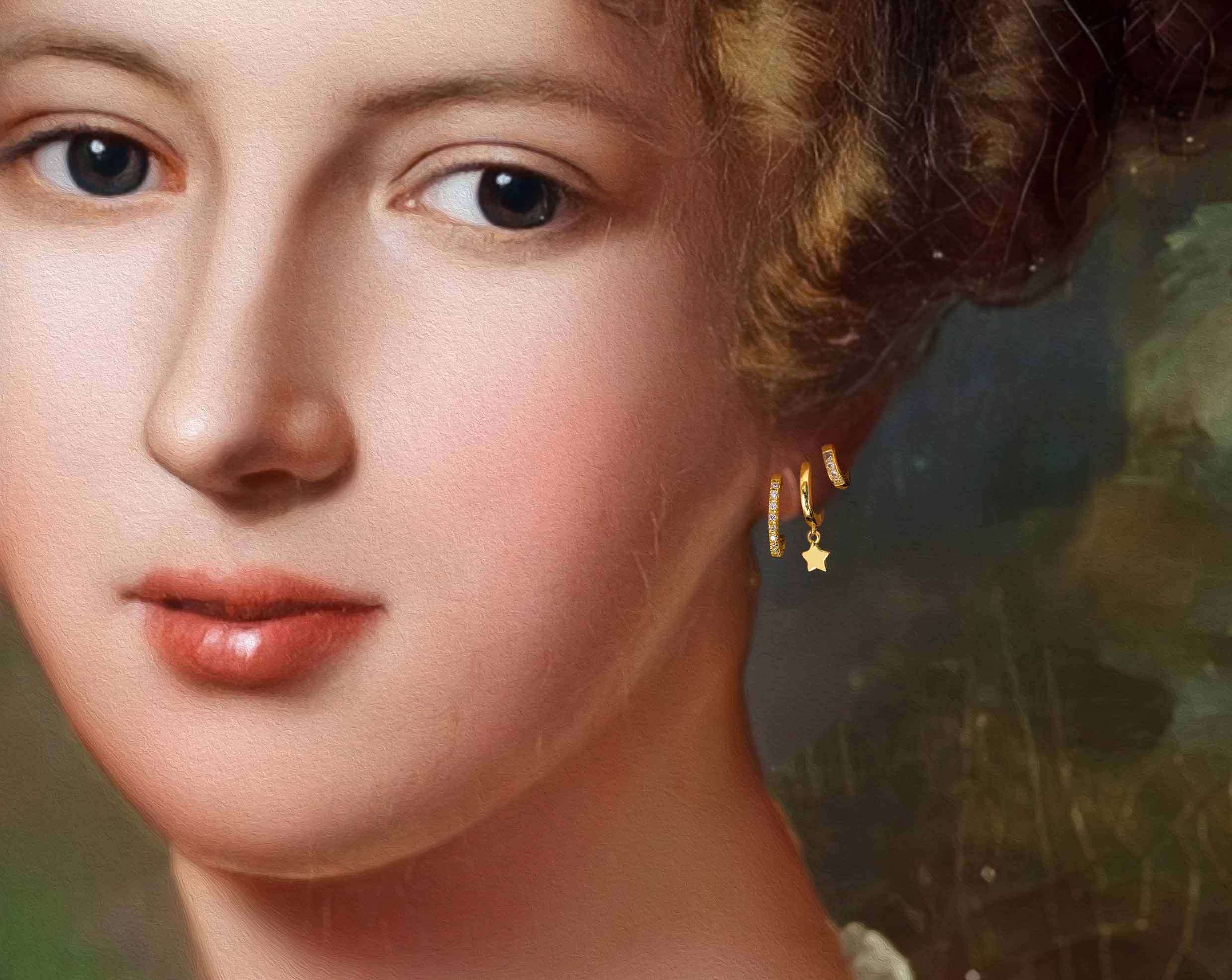- Styling: the key word is layering. Stack simple hoops with charms and finish with an ear cuff or helix/conch hoop for a unique curation.